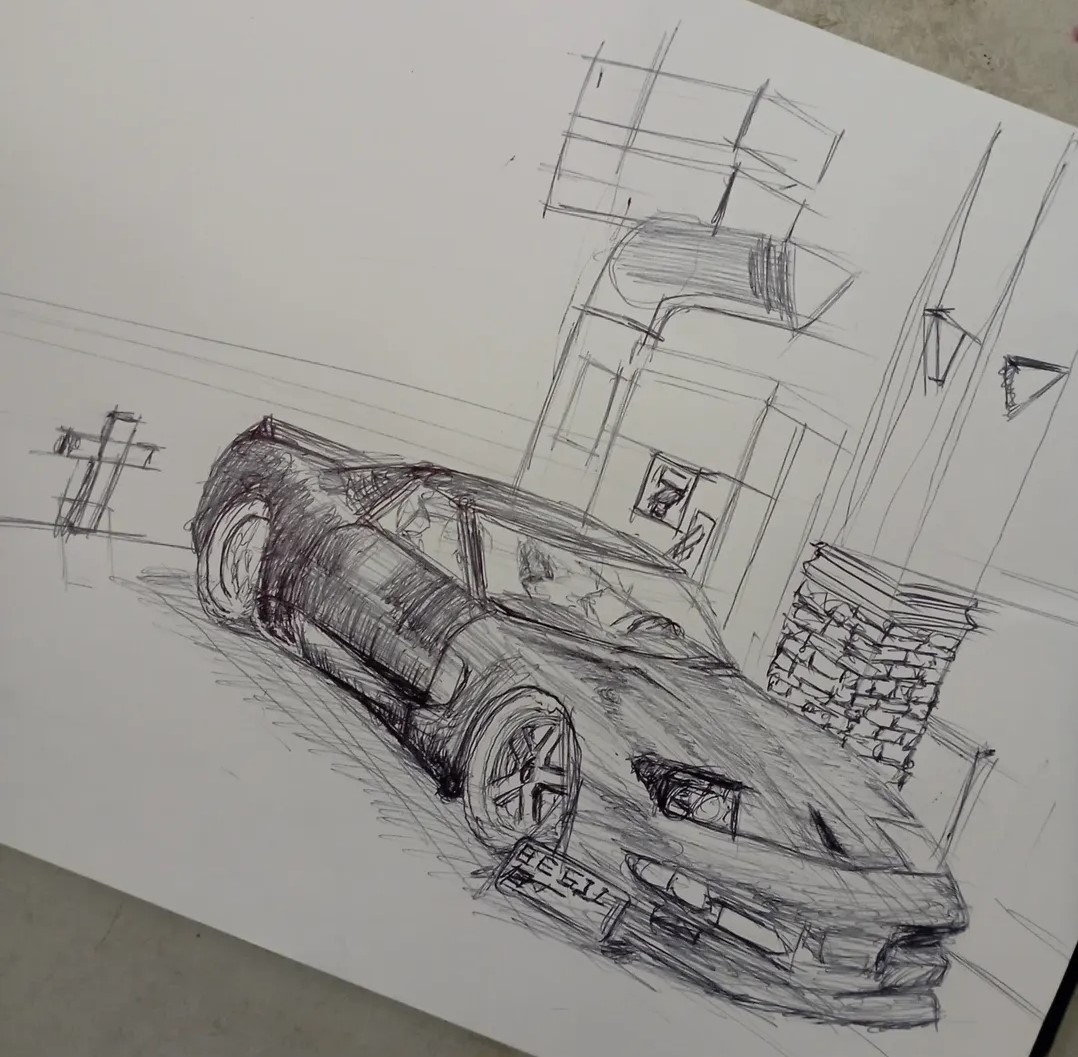 un croquis d'une corvette c5 montée comme il me décrivait qu'il la ferai , je sais même pas si c'est français mais ouais